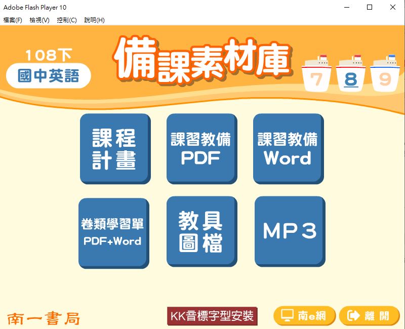 • 108學年下學期 國中 南一版 英語備課素材庫 1年級(含教具圖檔、課本、卷類資源、備課用書、習作含解答、MP3)教學光碟DVD版