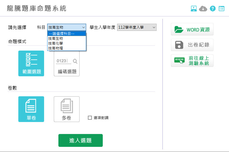 DAE0275--112學年下學期 技術高中命題光碟 龍騰版 英文科 A版(1、2、3、4、5、6、單字測驗)(108課綱) 題庫光碟