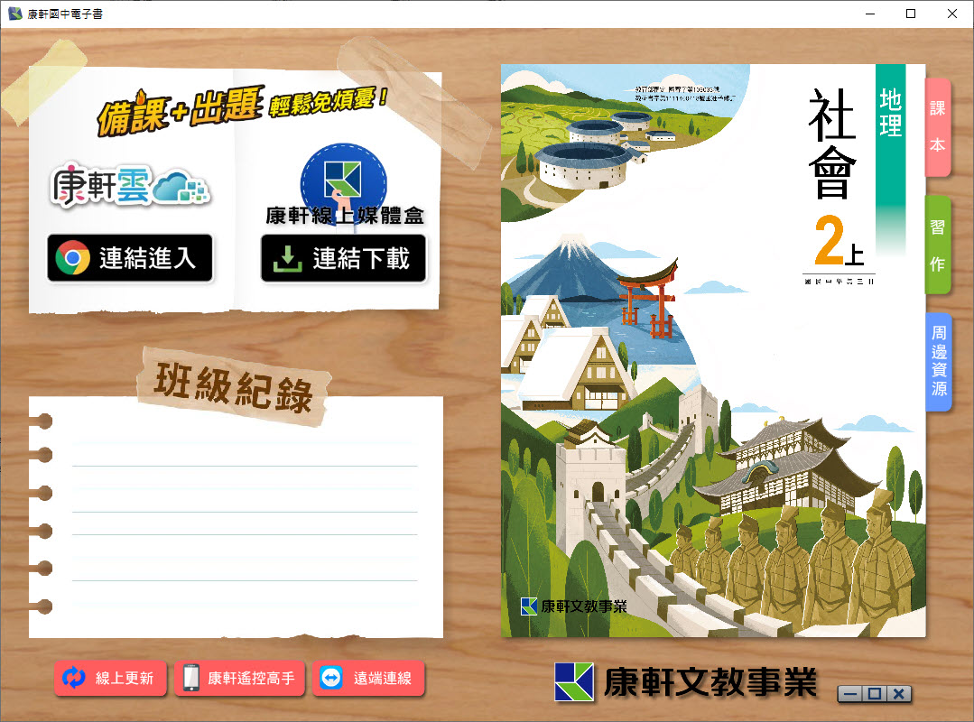 112學年上學期 國中 康軒版 地理電子書 2年級(含課本、習作含解答、教學資源)教學光碟