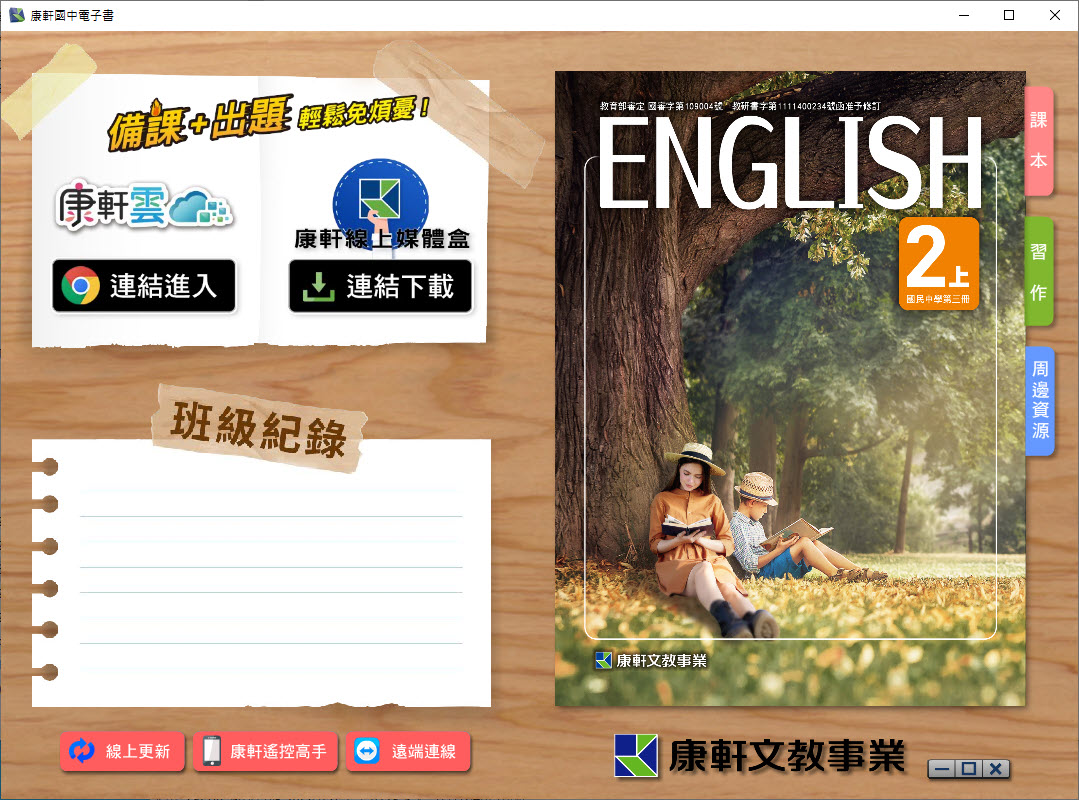 112學年上學期 國中 康軒版 英語電子書 2年級(含課本、習作含解答、教學資源)教學光碟