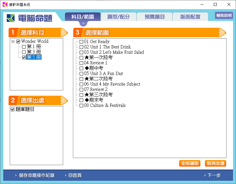 112學年上學期 國小命題光碟 康軒版 英語 Wonder World(1、3、5冊) 題庫光碟